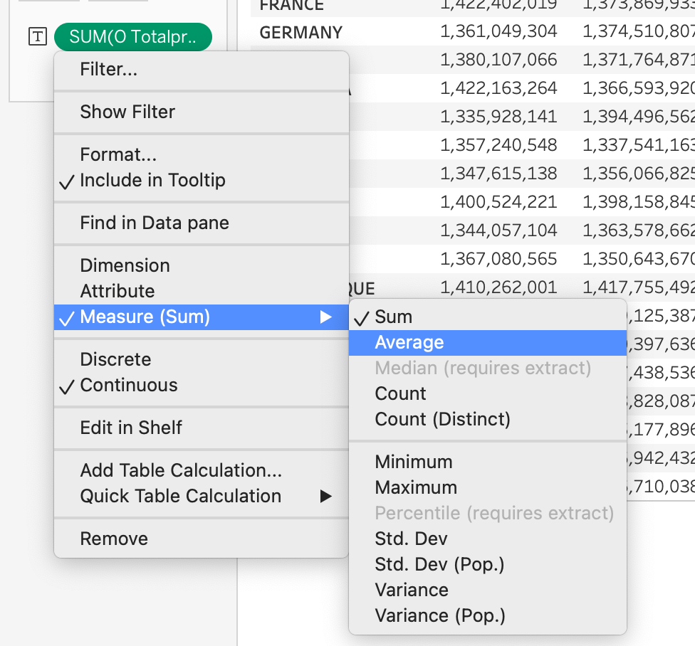 Abc值只是填充值,因为您未将聚合逻辑定义到该图标,因此需要您拖动度量到表格上。将 Totalprice 从 orders 表拖到表格中间。请注意默认的计算是对 Totalprices 进行 SUM:
