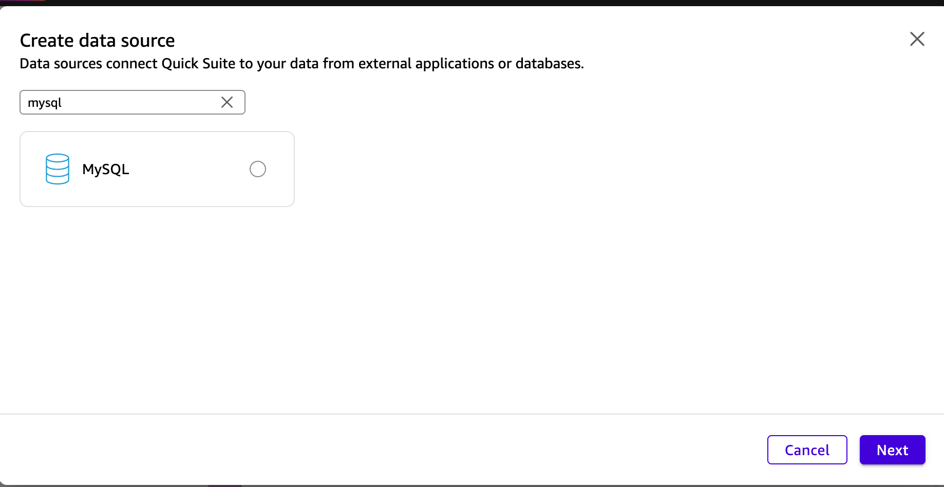 搜索 QuickSight 捆绑的官方 MySQL 连接器: